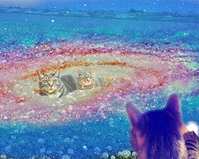 両親が帰天してからは、猫たちが新たな家族になりましたが、ファンタジックなテーマは変わらず、ますます想像の翼を広げています!